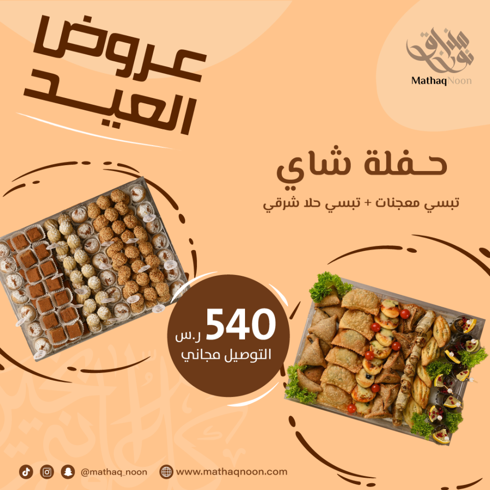 لا داعي للقلق من التحضير الطويل الحفلات فمذاق نون حضر لك تشكيلة رائعة من الحلويات والمعجنات التي تناسب جميع الأذواق، وتكفي حتى 25 شخصًا.